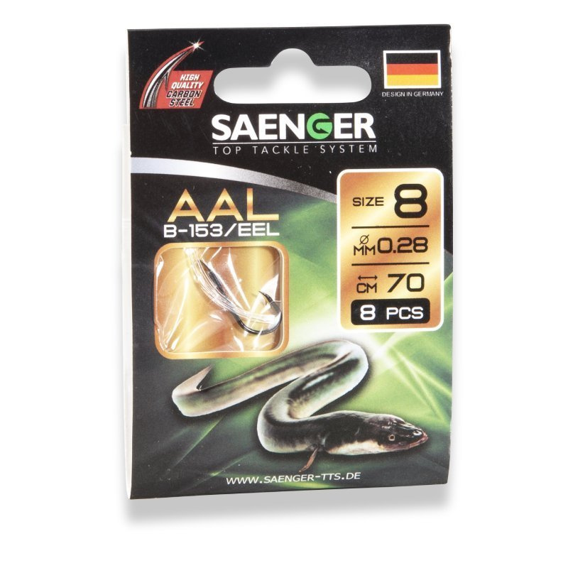 Připravený návazec pro lov úhořů. Stačí připnout na obratlík nebo karabinku, nandat rousnici a nahodit. háček B-153 velikost háčku 4 délka návazce 70 cm balení 8 ks průměr vlasce 0,32 mm nosnost 8,7 kg Více informací