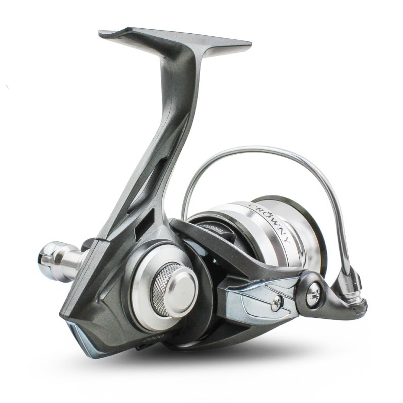 Saenger Crowny je špičkový naviják, který můžeme zařadit do té nejvyšší třídy. Dlouholeté know-how vývoje produktů se snoubí s nejmodernějšími inženýrskými dovednostmi a je tak technologickým milníkem v historii společnosti. Abychom tuto hodnotu podtrhli, rozhodli se naši vývojáři produktů dodat naviják v elegantní přepravní krabici, která zároveň chrání před nárazy. Extrémně lehká konstrukce, vysoká brzdná síla díky karbonovým podložkám (fast drag), přesné pokládání vlasce a hedvábně hladký chod, dokonale charakterizují tento mistrovský přívlačový naviják. Barevná kombinace gunsmoke, černé a stříbrné (hliníkové komponenty) dělá z Crowny opravdového krasavce.