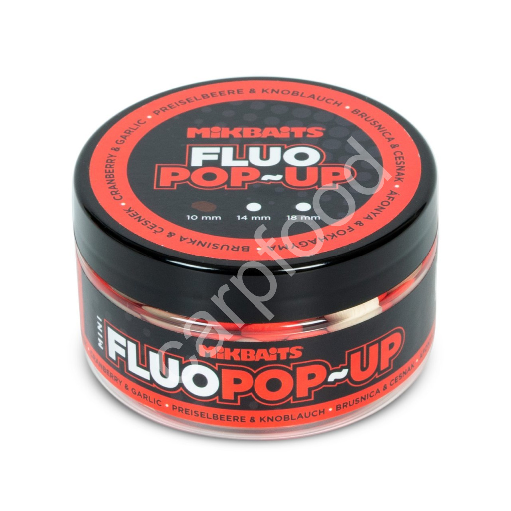 Plovoucí fluo boilie Mikbaits 14 a 18 mm jsou velmi účinnou nástrahou, použitelnou jak samostatně, tak v kombinaci s klasickým boilie na panáčka. Jejich výrazná barva zdálky přitahuje pozornost ryb, silné atraktivní aroma láká k záběru. Fluo pop-up Mikbaits mají dlouhodobou schopnost plavat na všech typech montáží pro plovoucí boilie. Jejich zpracování je zcela nadstandardní. Při použití na panáčka 14 mm fluo pop-up doporučujeme k boilie 16 až 20 mm, 18 mm fluo pop-up k boilie 20 až 30 mm. Všechny příchutě jsou použitelné celoročně, tedy i ve velmi chladných obdobích. Fluo pop-up byste neměli máčet v dipech, zvlášť ne dlouhodobě, jinak by mohly ztratit plovoucí schopnosti. Pro zatraktivnění nebo oživení můžete postříkat Neo sprayem nebo krátce před náhozem pokapat Neo plasmou.
